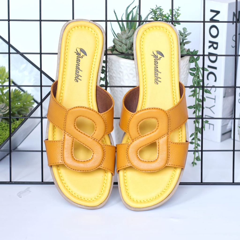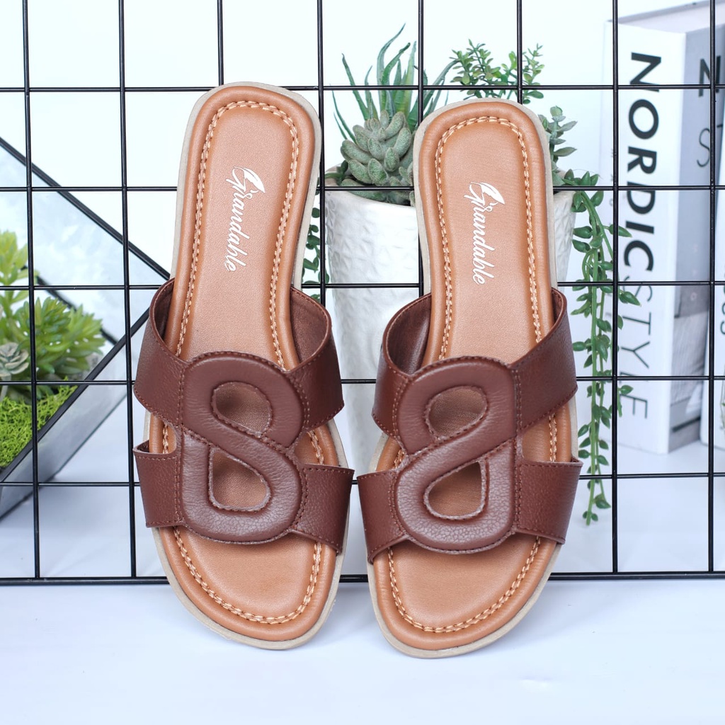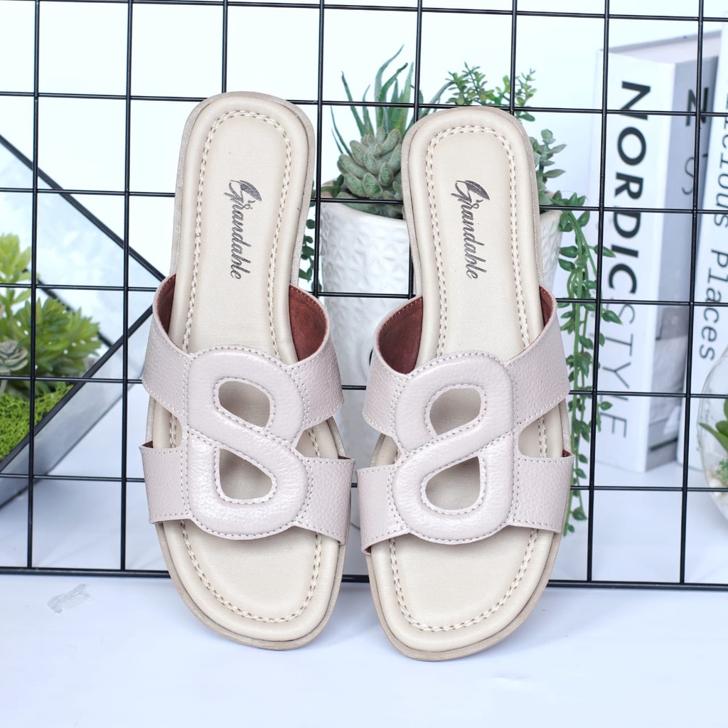 Harga Grandable Gendhis Sendal Sandal Slop Selop Kulit Asli Flat Teplek Wanita Terbaru