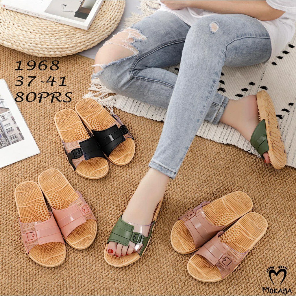 Sandal Slop Rematik Wanita Ban Warna Gesper Mika Transparant Cantik Import Mokaya/Size 37-41(1968-981/A))