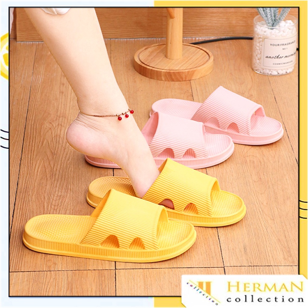 HC Sandal Slop Karet Polos Tebal 6494 Sendal Rumah Berkualitas Motif Salur Sendal EVA Empuk Sendal Karet Couple Garis Home Slipper Anti Slip Wanita Pria Gaya Korea Murah Import