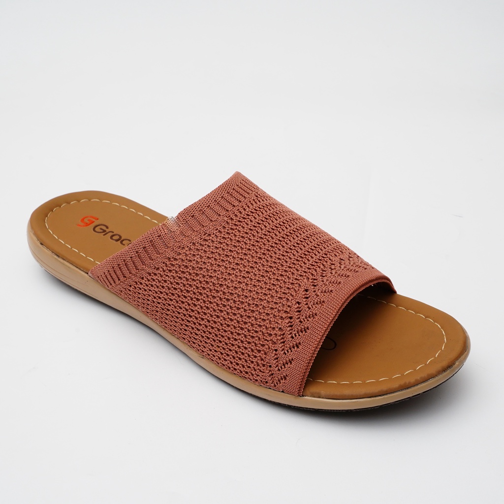 Grace(RJB 01)/Sandal Teplek Wanita Distro Selop Rajut elastis Flat/sandal slop karet rajut cewek Murah