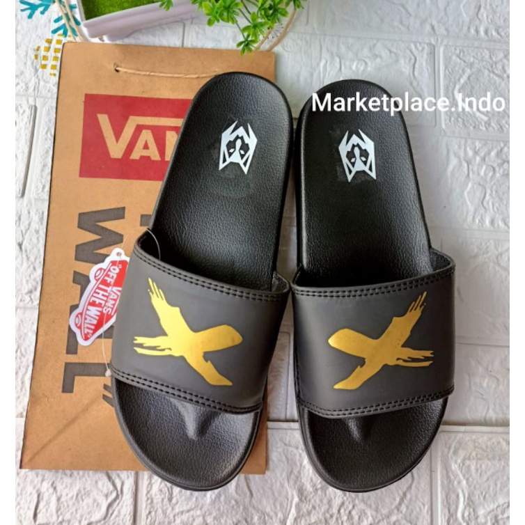 Sandal Slip On Maxslide Ori/Slide Black X Gold Grade Ori/sandal slop terlaris.
