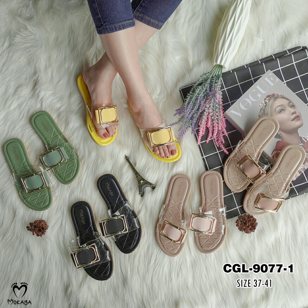 Sandal Slop Jelly Wanita Mika Gesper Kotak Besar Cantik Import Mokaya/ size 37-41 (CGL-9077-1)