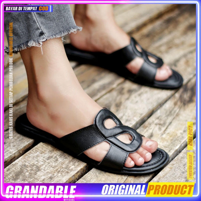 Grandable Gendhis Sendal Sandal Slop Selop Kulit Asli Flat Teplek Wanita Terbaru
