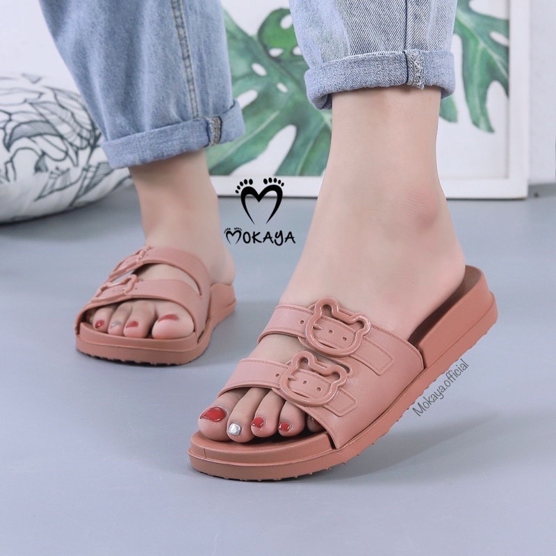 Sandal slop wanita impor Motif Bear Lucu - Mokaya 2059 (37-41) / Sandal slop ban 3 cewek