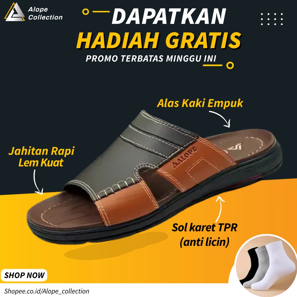 Sendal Sandal Slop Selop Kulit Pria Cowok Dewasa Original Berkualitas Import Kekinian Casual Terbaru