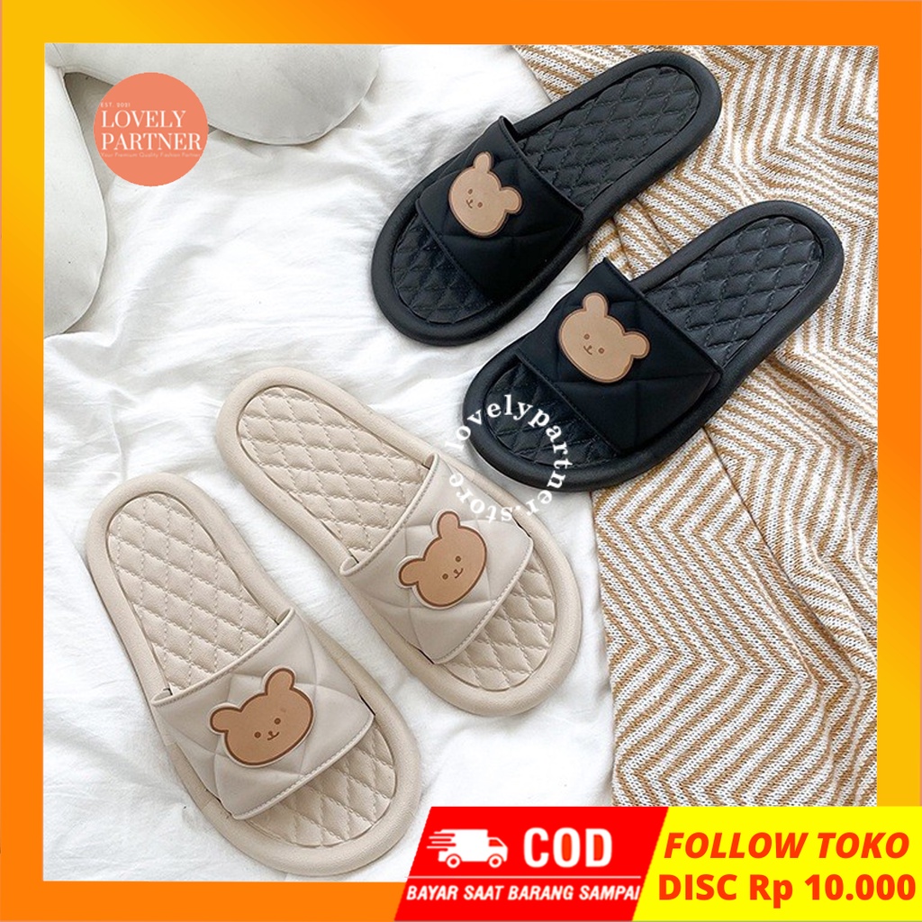 S20 Sandal Slop Karet Wanita Empuk Motif Beruang Lucu Sendal Selop Rumah Hotel Women Home Sandals Elastis Cewek Perempuan Murah Miniso Dapur Kamar Mandi Import Korea Karakter Bear Premium Eva Tebal Hitam Sepatu Pria Cowok Laki Laki Jepit Anti Slip Keren