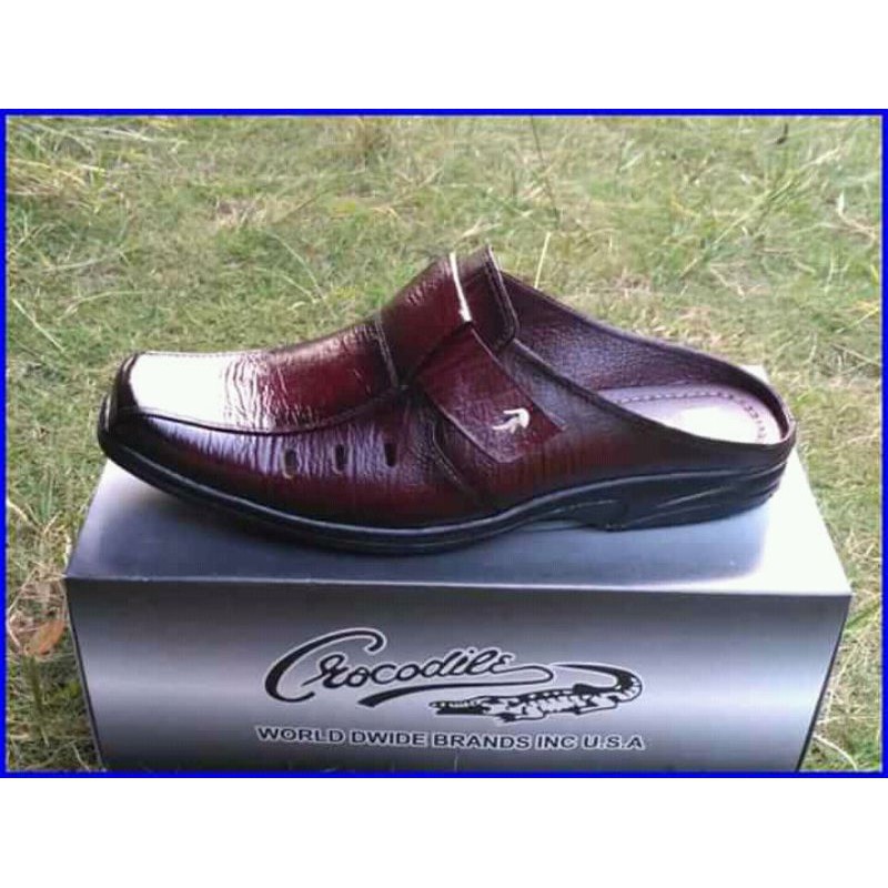 Sandal slop bustong pria kulit asli sepatu slop pria