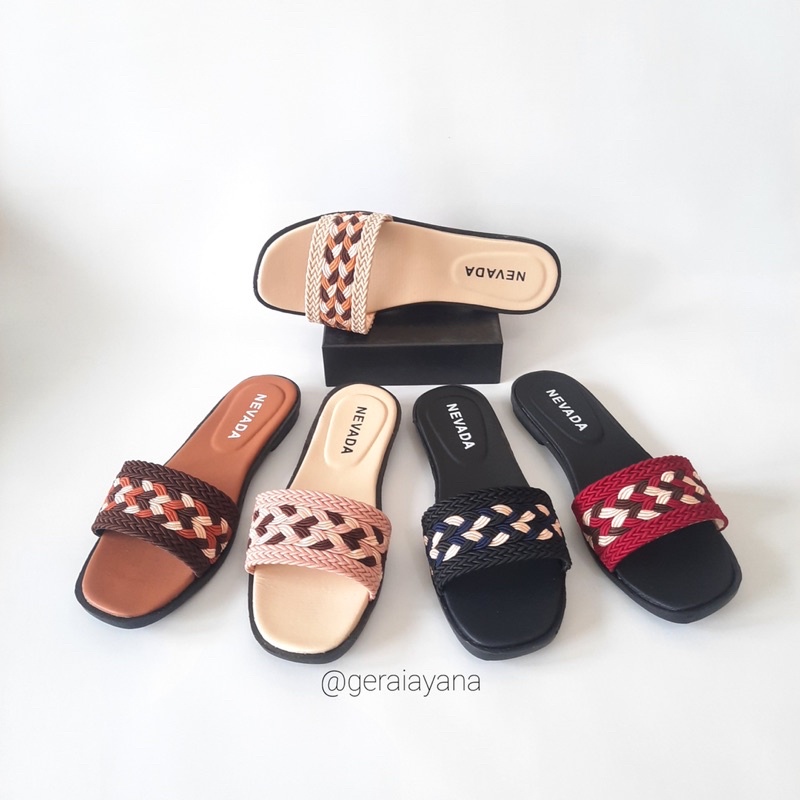 6.6 SALE! Sandal Selop Kepang Nevada - Sandal Slop Anyam - Sandal Wanita Nevada