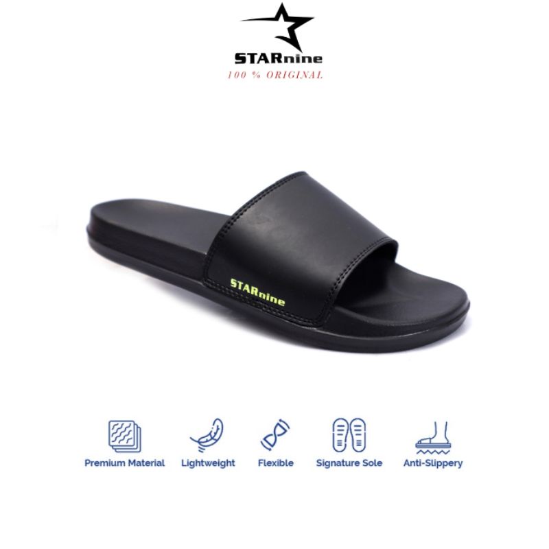 STARnine stsn002 hitam hijau-Sandal slide/sandal pria/sandal slop